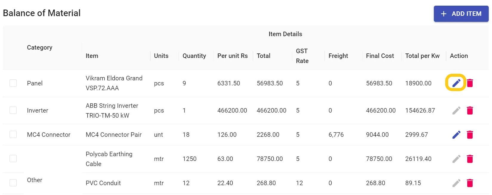 How To Create A Bill of Material (BoM) Step 1: Click on the Edit Icon of the Item you want to add freight. (Please keep in mind ...