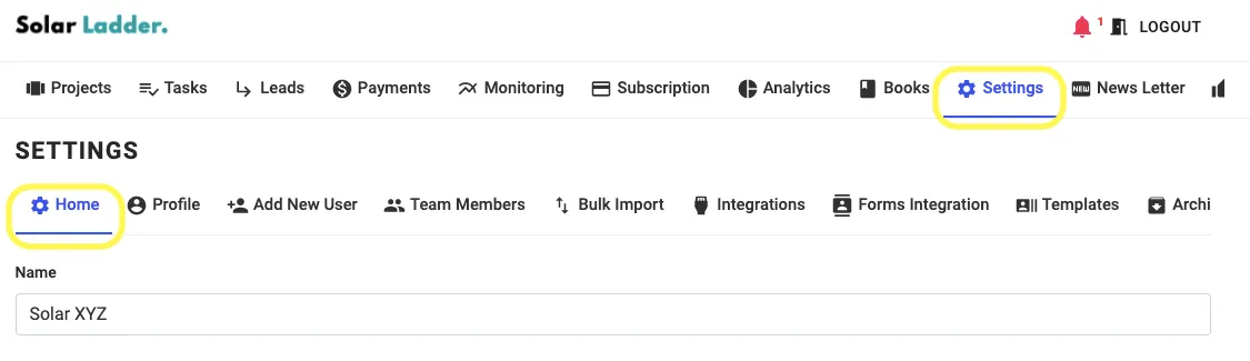How to Change Logo Step 1: Go to Settings Tab and Click on Home Step 2: Go to Company Logo and Drop Image/Click on the ...