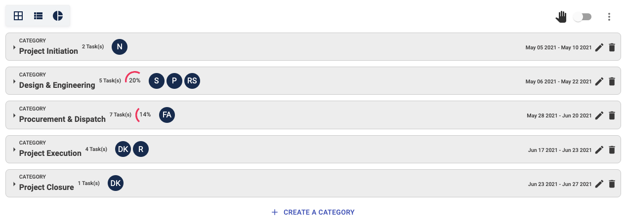 Please Note: Start by adding the category that comes last on your Project Management cycle and work your way up to the First Stage by adding more Categories
