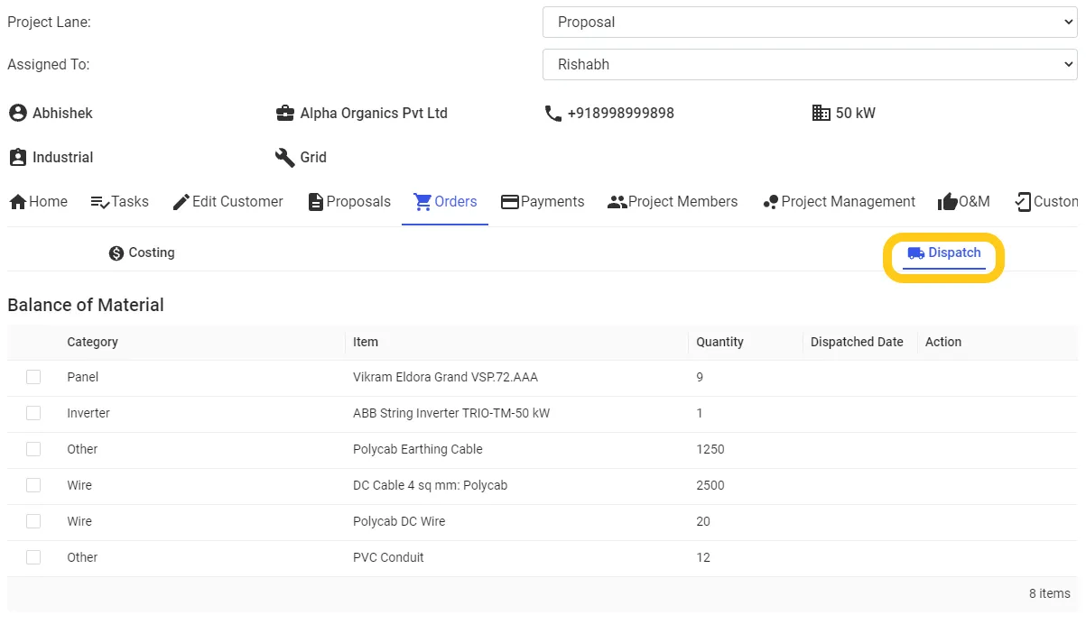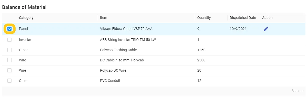 Step 2: Click on the "Tick Box" of the item you want to dispatch