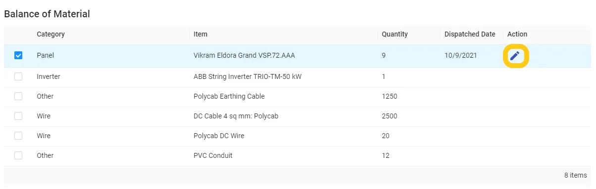 Step 1: Click on the "Edit Icon" of the item you want to edit