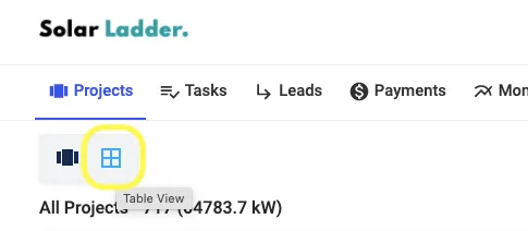 Step 1: Go to Projects Tab and Click on Table View Icon