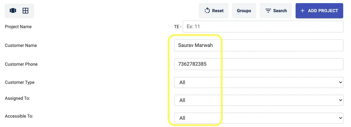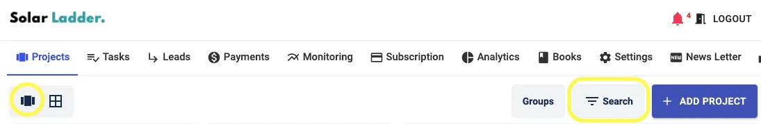 Step 1: Go to Projects Tab and Click on Search