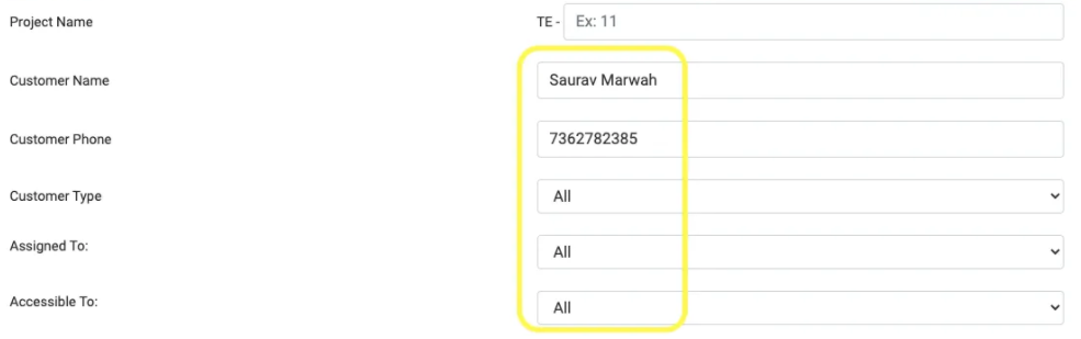 Step 2: Fill one (or more) any of the details of the project