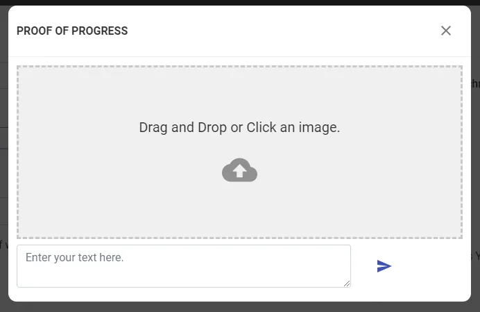 Step 2: A pop-up will appear, Enter any proof of progress image or text and click send.