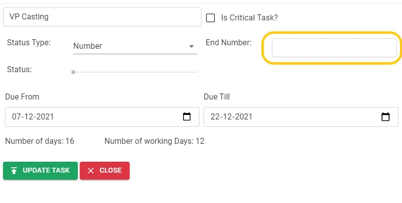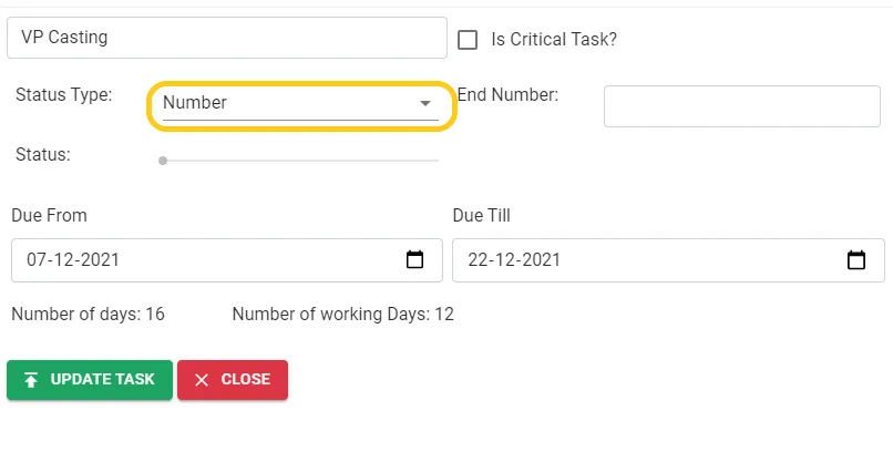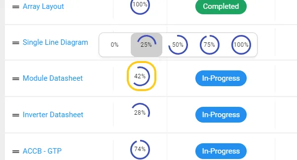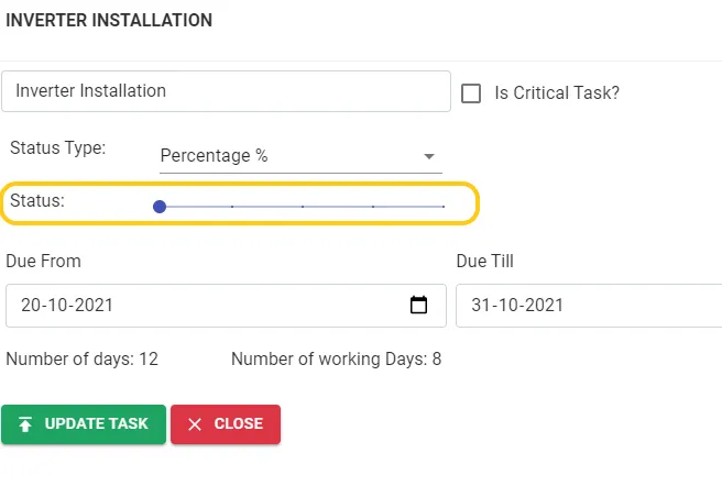 Option b: Use the Slider to decide the progress: Click on any task and use the slider to select progress (click on any task to see this window)
