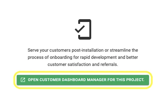 Step 1: Open that project and Go to Customer Dashboard Tab and Click on "Open Customer Dashboard Manager for this Project"