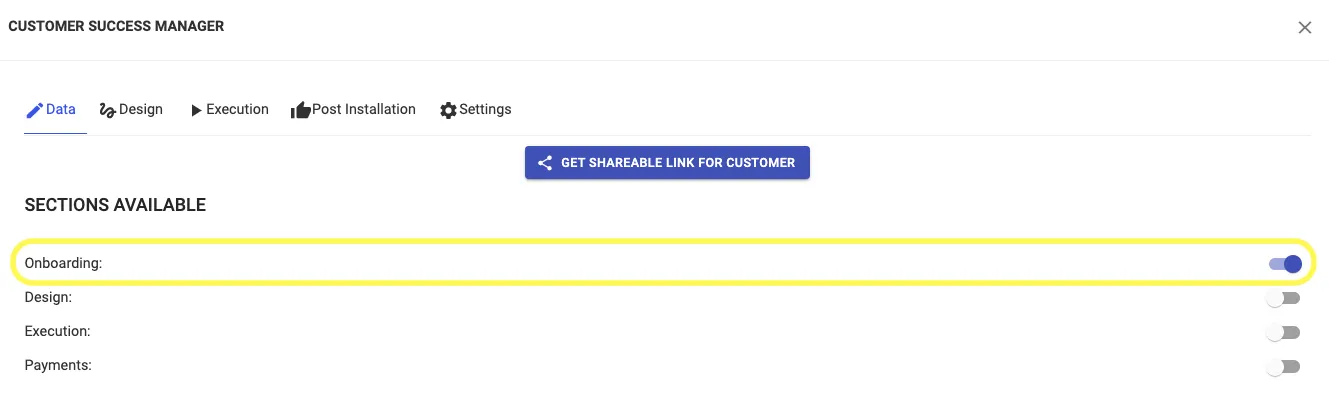 Step 2: Initialize Onboarding Stage by turning the toggle button on