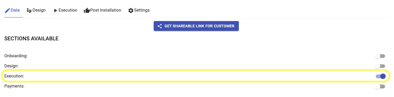 (Please Note: Payment Stage can be kept on while execution stage is still in progress and all payment details added in Payments Tab get linked with Customer Dashboard and get displayed to the customer)