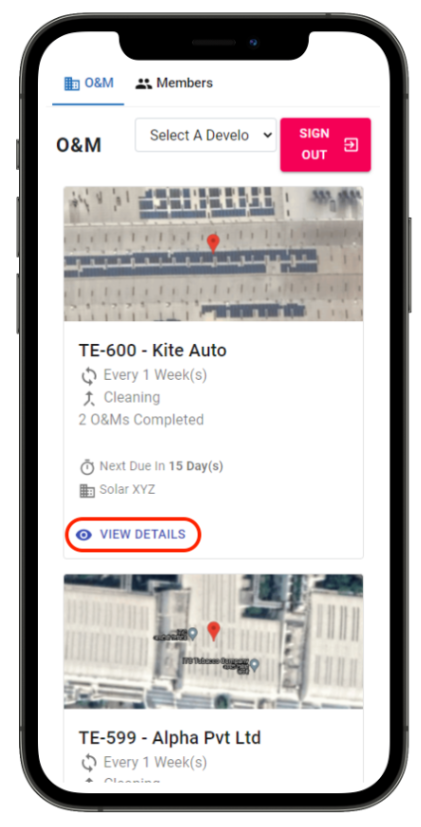 Step 1: Click on "View Details" of the project you want to start O&M for